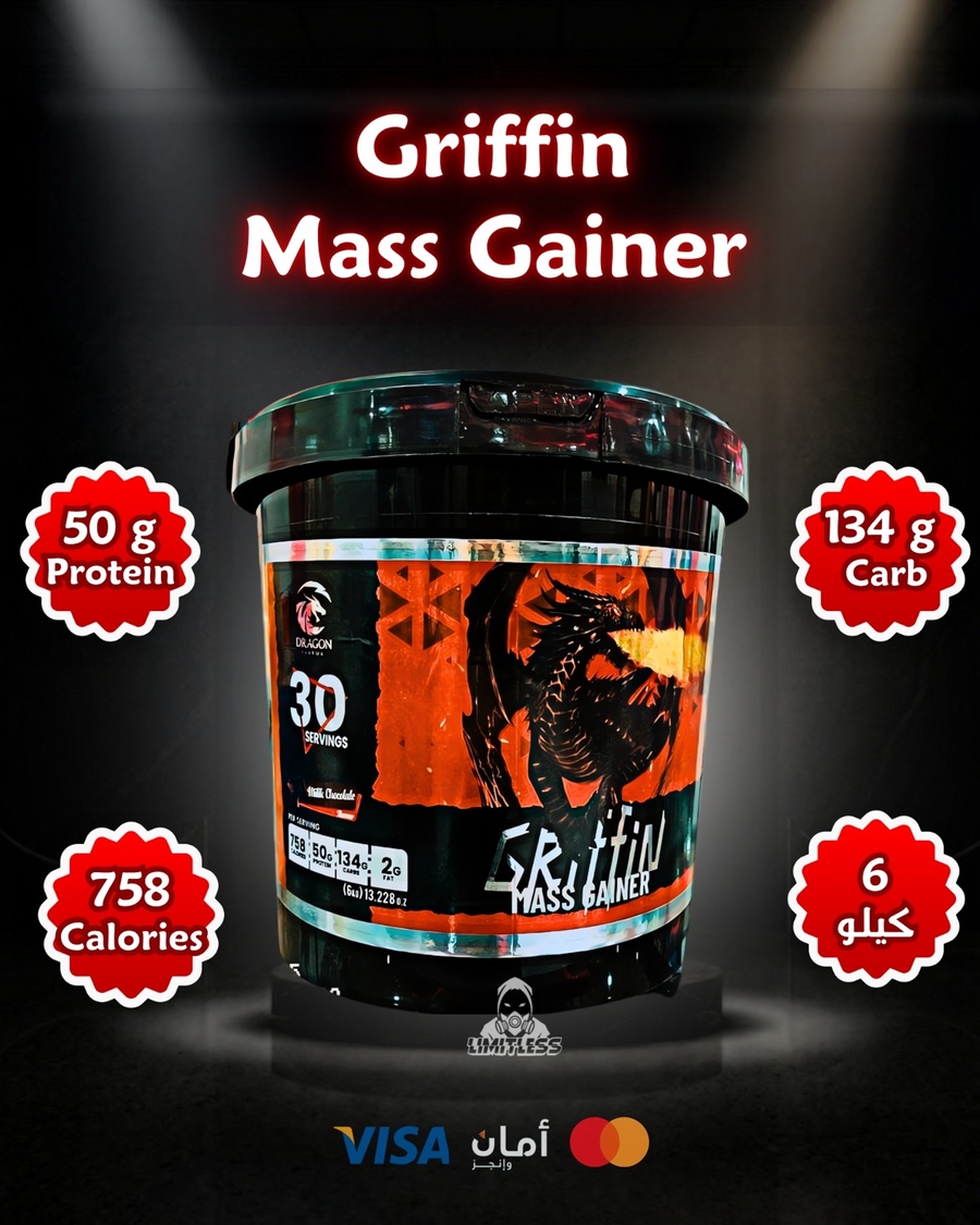 دلوقتي مع Grffin Mass Gainer، ممكن تدخل جسمك ألف سعرة حرارية بمنتهى السهولة وتزيد كتلة عضلية بشكل فعال. لو كنت بتعاني من نقص الوزن أو عايز تضخم عضلاتك، فده المنتج المثالي ليك!