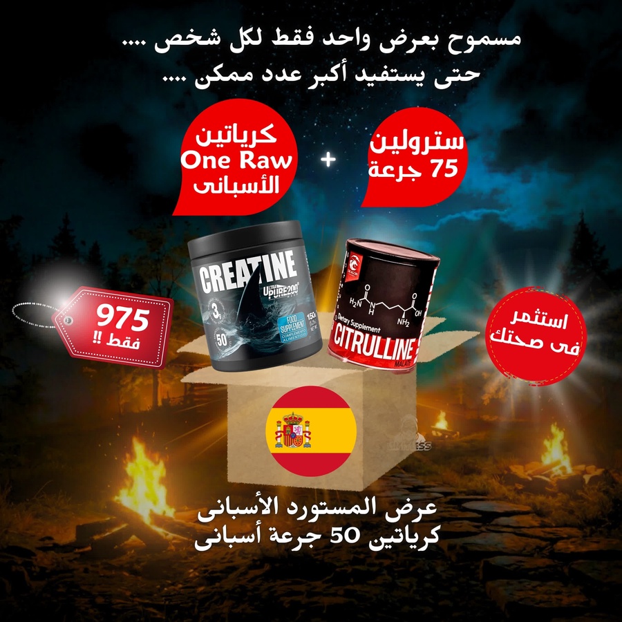 ارتقِ بتمارينك مع كرياتين + سترولين One Raw Creatine + Citrulline. مزيج مثالي لزيادة القوة الانفجارية، تعزيز ضخ الدم(Pump)