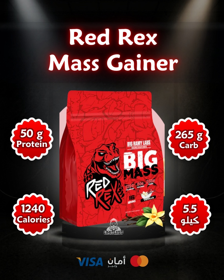 بيج رامى ريد ريكس ماس جينر Red Rex Mass Gainer للضخامة العضلية وزيادة الوزن المنتج أصلى التوصيل لأى مكان فى مصر خلال يوم