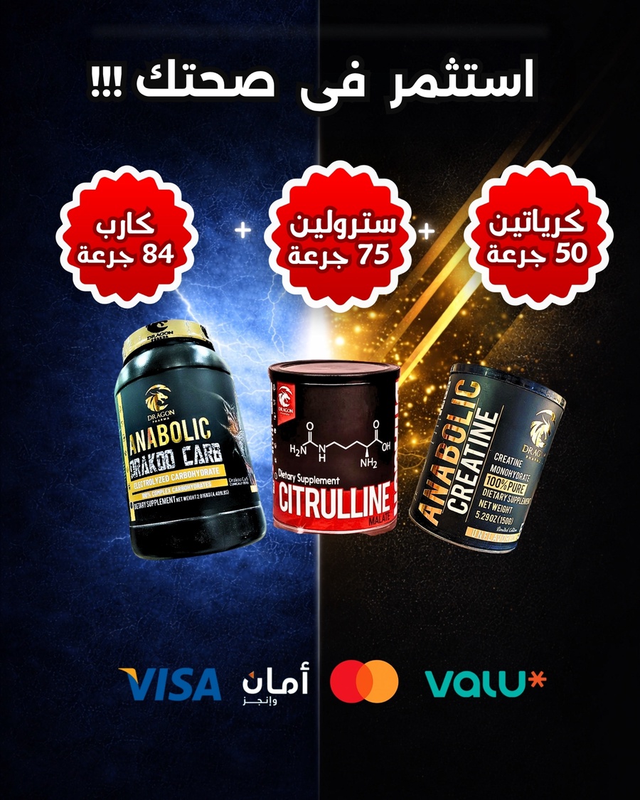 عرض الضخامة العضلية: انابوليك كرياتين (Anabolic Creatine) 50 جرعة + انابوليك كارب (Anabolic Carb) 84 جرعة + سترولين (Citrulline) 75 جرعة. طاقة وقوة لتمارينك