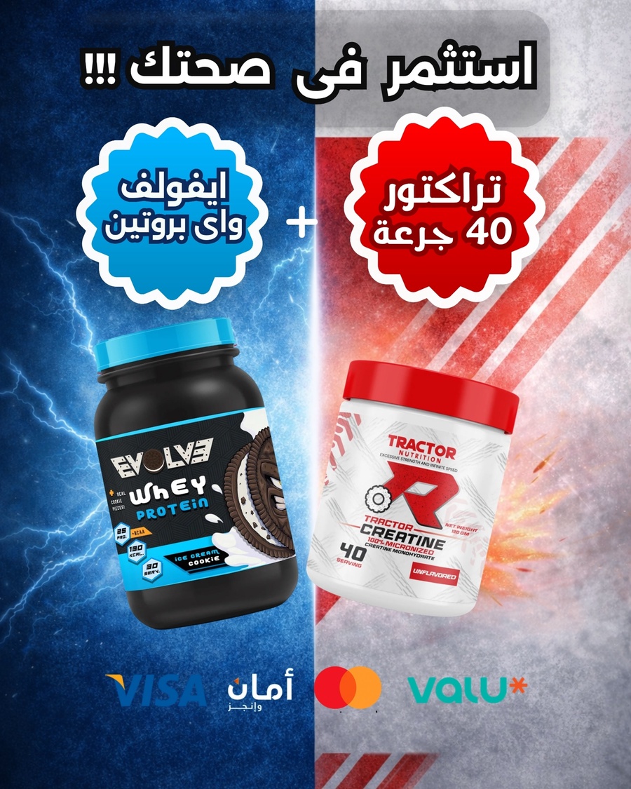 تركيبة الـ Bulk & Power .Evolve Protein + Creatine بيقدملك الـ Maximum efficiency اللي جسمك محتاجها. طعم خيالي، ذوبان مثالي، اتمرن ب Premium quality