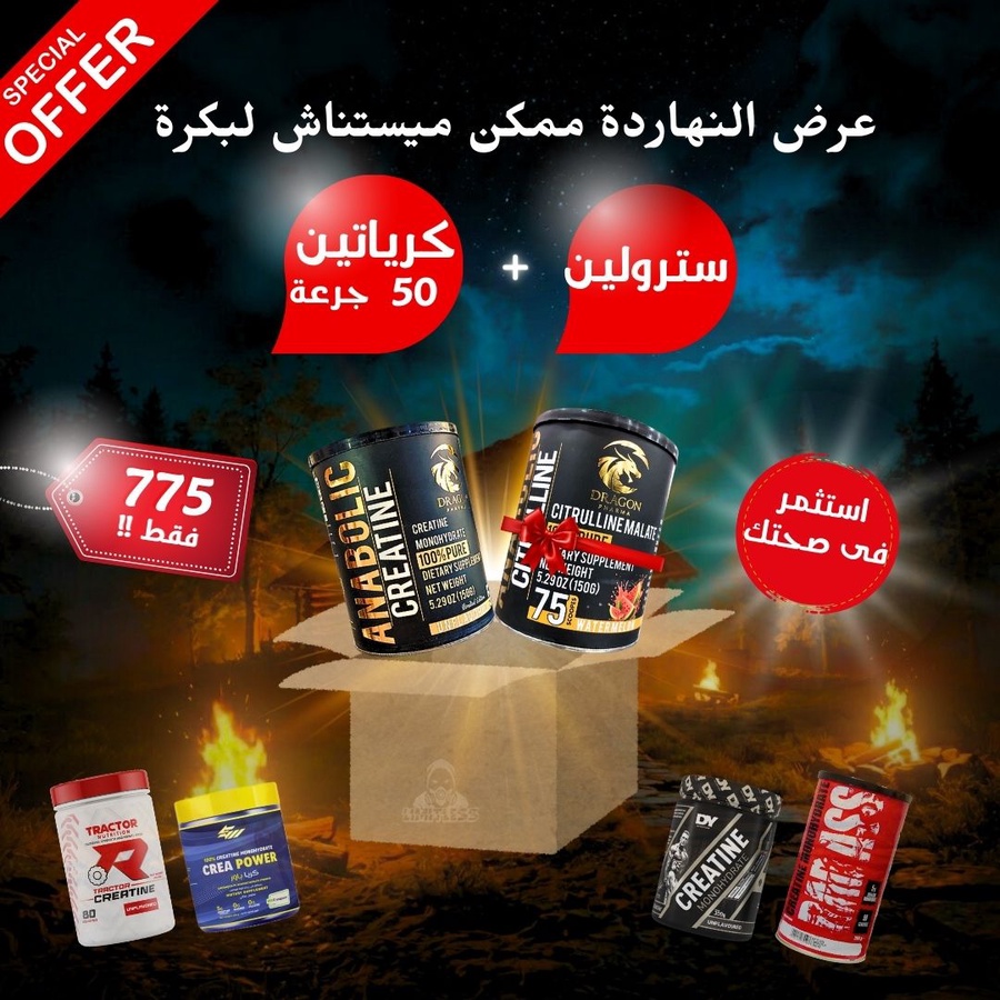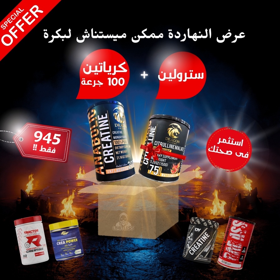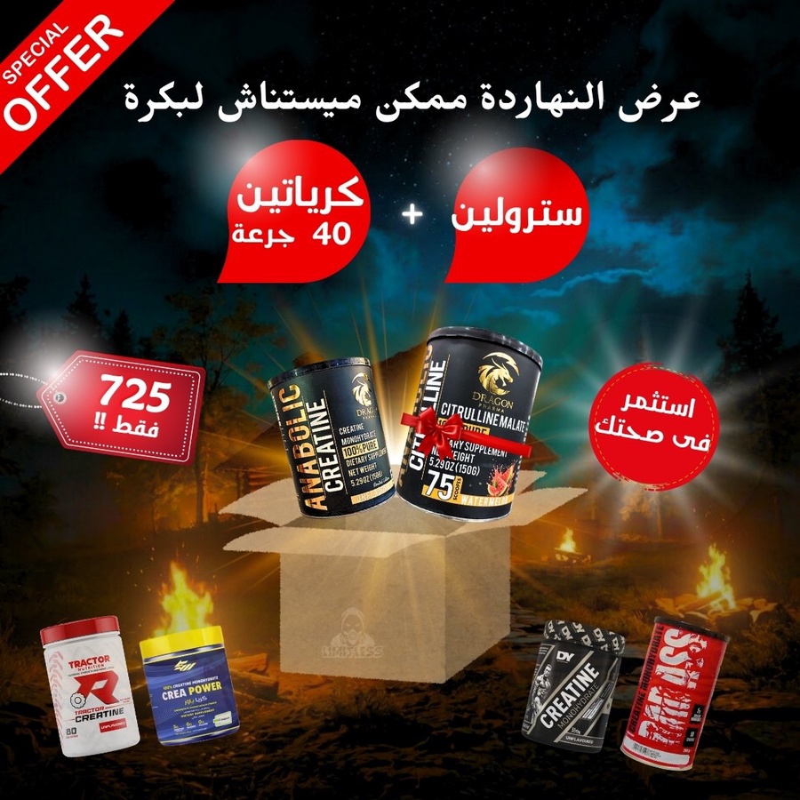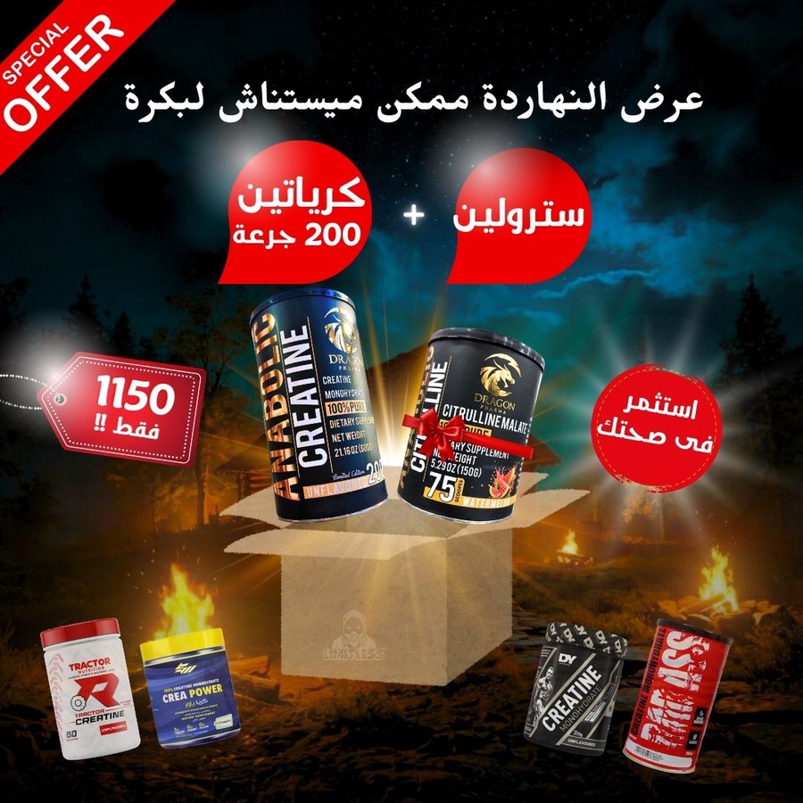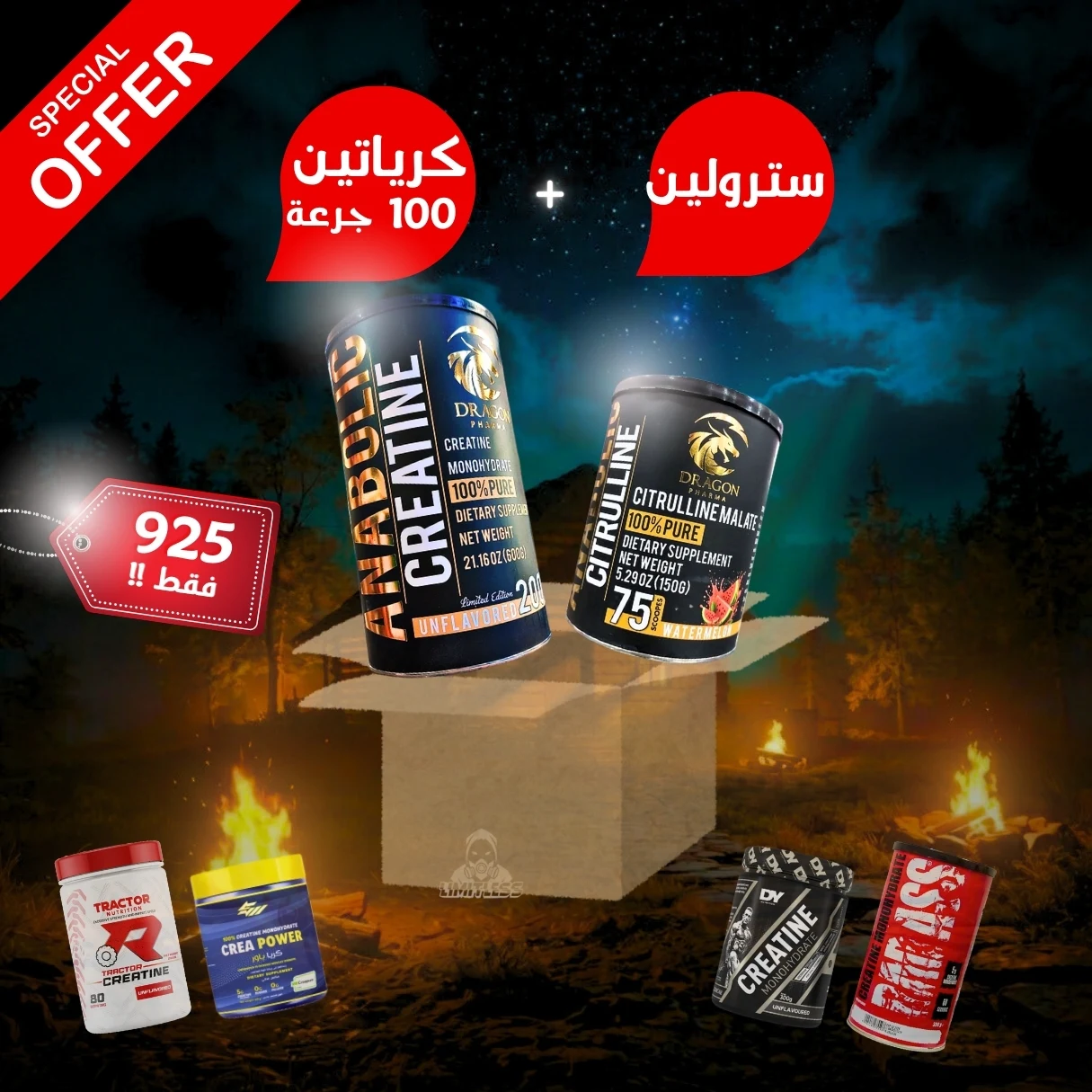 عرض ضخامة وعروق: سيترولين ماليت + كرياتين أنابوليك لـ pump هائل. SKU: OFR-CITMAL-ANBCR. شحن سريع في مصر!