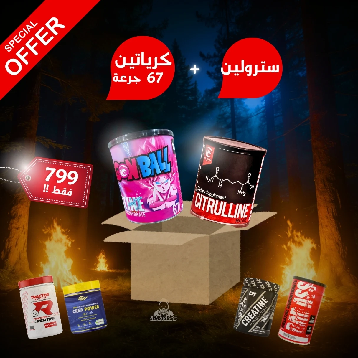 عرض سيترولين ماليت + دراجون بول كرياتين مونو: ضخ دم + قوة هائلة. SKU: OFR-CITMAL-DBCR. شحن سريع في مصر!
