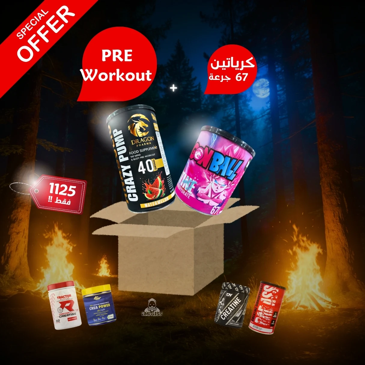 عرض Crazy Pump Pre-Workout + DragonBall Creatine Monohydrate: طاقة وضخ هائل. SKU: OFR-CPZPRE-DBCR. شحن سريع في مصر!